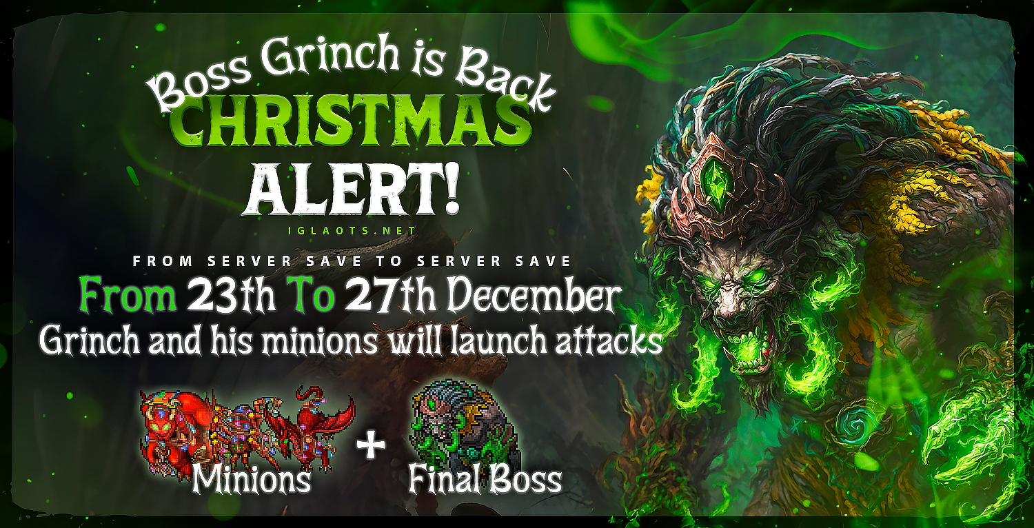 From December 23rd (server save) until December 27th (server save), Grinch raids will be appearing on our server.