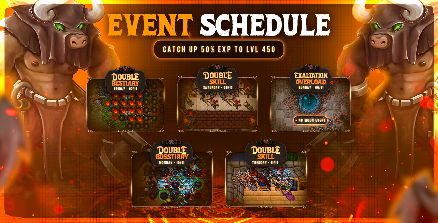 In addition, a Catch-Up Event will be active from Friday’s server save until Tuesday’s server save, offering +50% experience to all players below level 450.